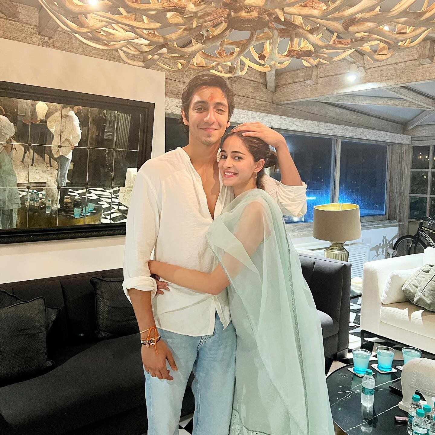 সামাজিক যোগাযোগমাধ্যমে ভাইরাল হয়েছে তাঁদের একগুচ্ছ ছবি। তাতে দেখা যাচ্ছে, পূজা শেষে হাসিমুখে আহানের হাতে রাখি পরাচ্ছেন অনন্যা। সঙ্গে ভাই-বোনের শৈশবের একটি ছবি নতুন করে আলোচনায় এসেছে—যেখানে ছোট্ট বয়সে একে অপরকে জড়িয়ে রয়েছে তারা।